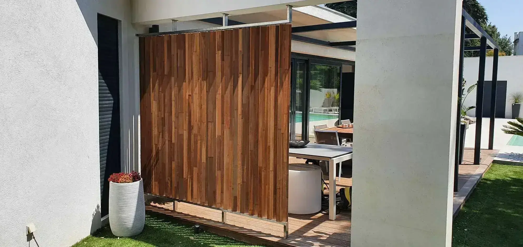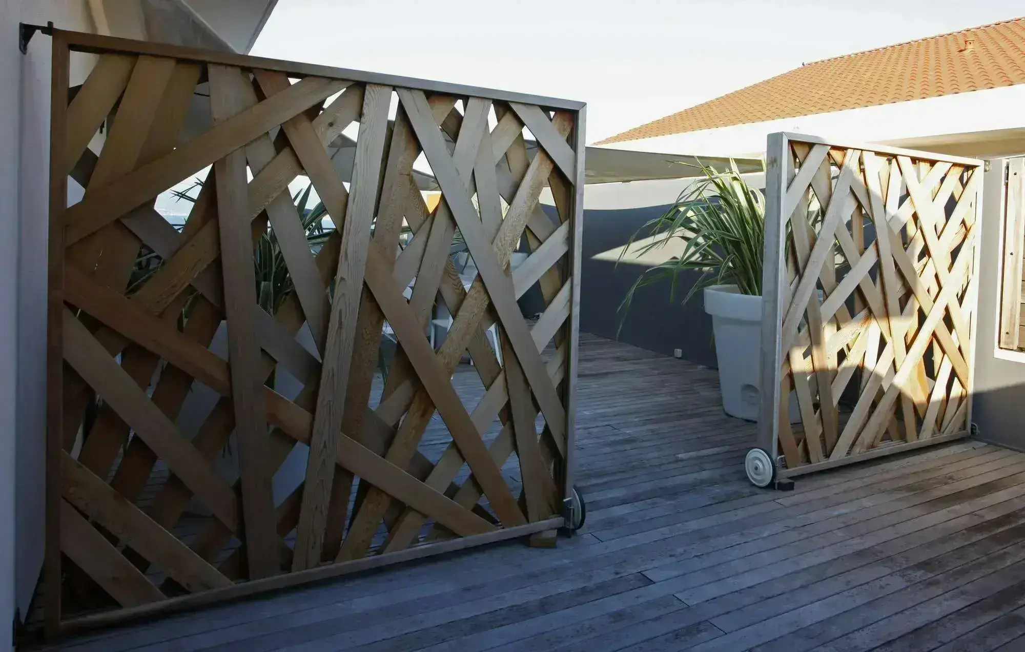 En extérieur les bois sont soumis a rudes épreuves, il faut donc utiliser des bois et des assemblages spécifiques. Nous évaluerons avec soin la meilleur solution pour répondre a vos attente.